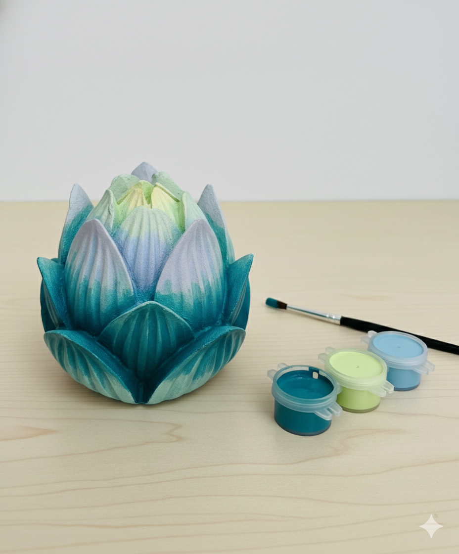 Bring a touch of serenity and personal flair to your home with our DIY Lotus Flower Plaster Painting Kit. Crafted from high-quality, smooth gypsum plaster, this intricate lotus-shaped pot is designed for those who love to create. It arrives in a pristine white finish, waiting for your choice of acrylics, watercolors, or metallic markers to bring it to life.